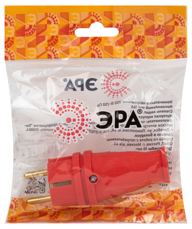 Вилка ЭРА VX10-R-IP44 каучуковая c заземлением 16А IP44 прямая красная