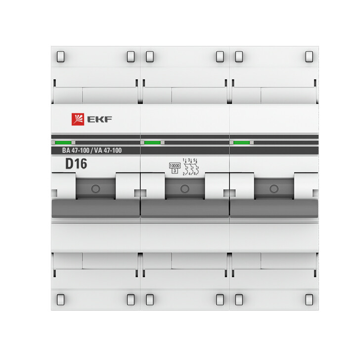 Автоматический выключатель 3P 16А (D) 10kA ВА 47-100M без теплового расцепителя EKF PROxima