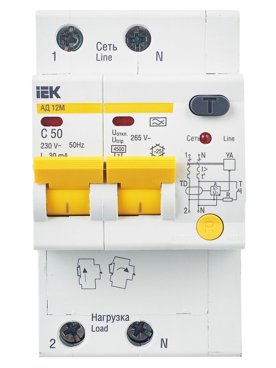 Выкл. дифф. тока 2-пол. 50А 30мА тип С серия АД12М