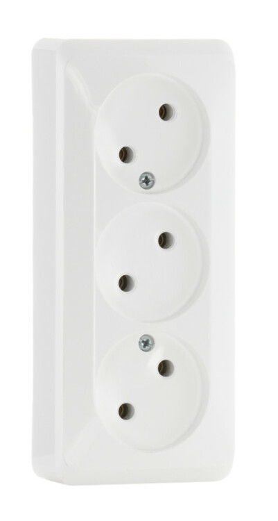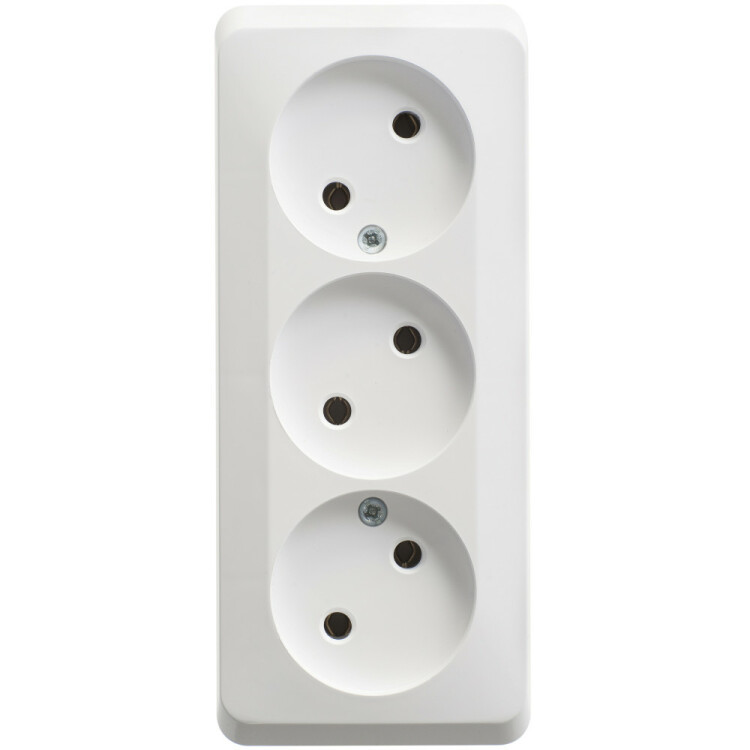ЭТЮД О/У тройная РОЗЕТКА без заземления без шторок 16А 250В, БЕЛЫЙ, Россия