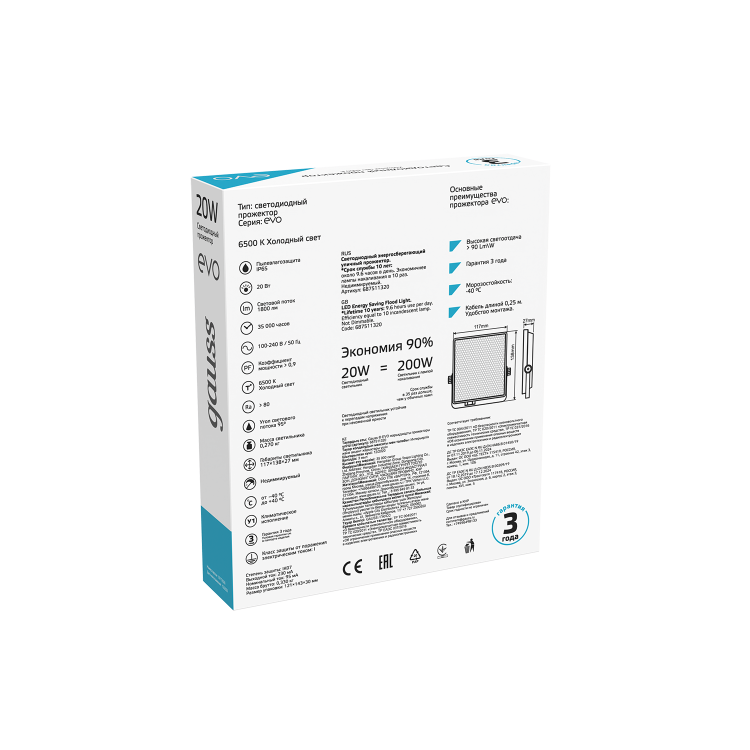 Прожектор LED 20Вт 1800Лм 6500K IP65 EVO