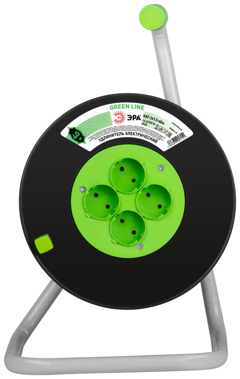 Удлинитель силовой ЭРА GREEN LINE KAT-2x1.5-40m Greenline на катушке пластик 4 розетки без заземления 40м ПВС 2x1.5мм2