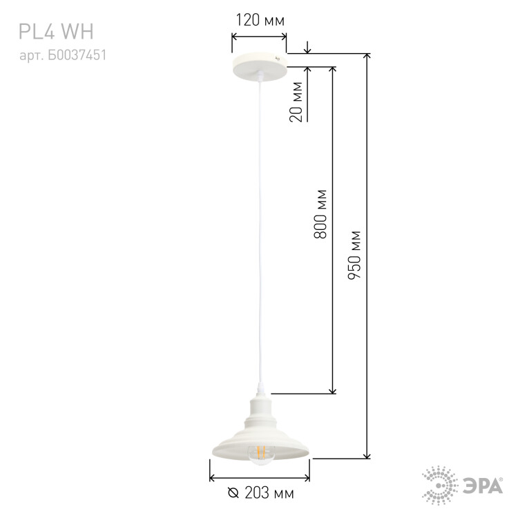 Светильник подвесной 60Вт E27 d203*1625 мм шагрень белый PL4 WH
