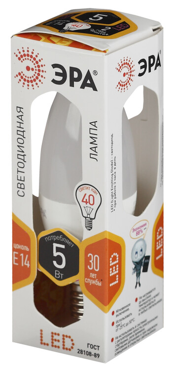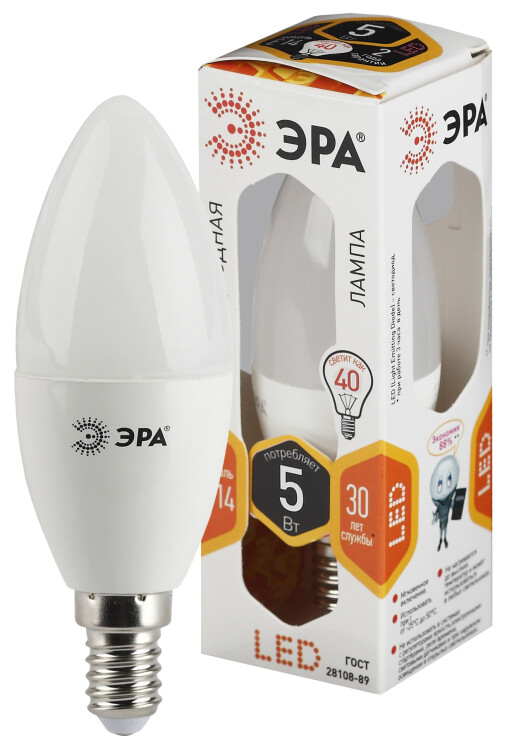 Лампочка светодиодная ЭРА STD LED B35-5W-827-E14 E14 / Е14 5Вт свеча теплый белый свет