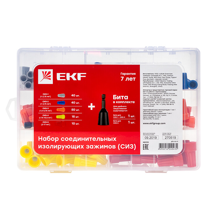 Набор СИЗ ( СИЗ-1 40шт, СИЗ-2 40шт, СИЗ-3 50 шт, СИЗ-4 15шт, СИЗ-5 10шт, Бита-2шт) EKF PROxima