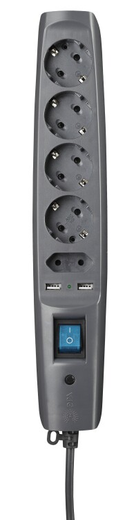 Сетевой фильтр, 5 розеток, длина 2 м, 3x0,75 мм?, 10А, с/з, IP20, термопласт, чёрный, с выключателем