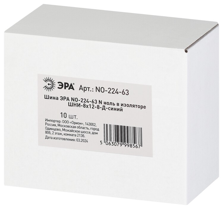 Шина ЭРА NO-224-63 N ноль в изоляторе ШНИ-8х12-8-Д-синий
