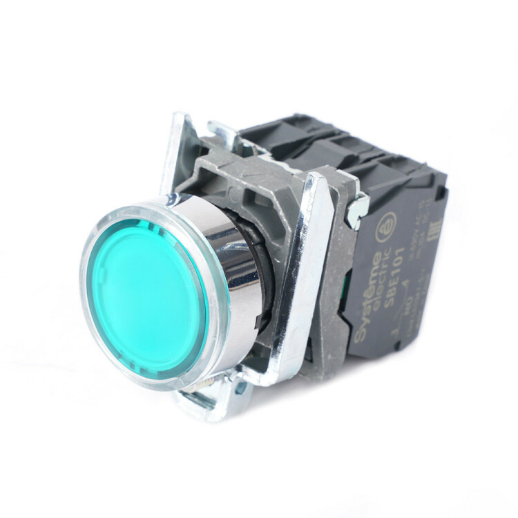 Кнопка SB4 с подсветкой в сборе модульная 22мм зеленая металл 24ВDC 1НО+1НЗ