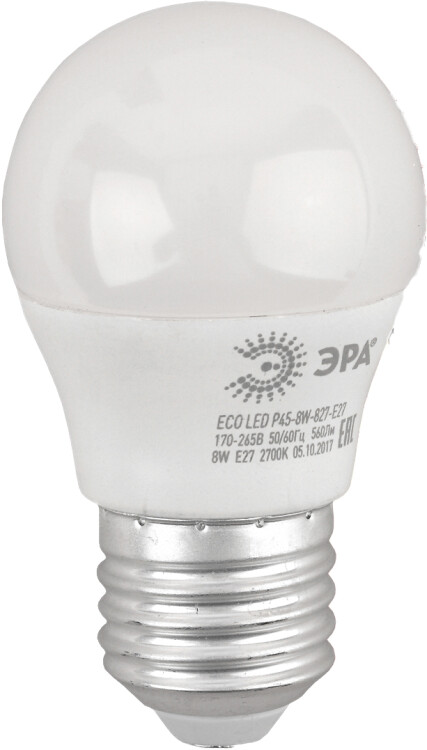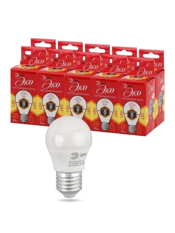 Лампочка светодиодная ЭРА RED LINE ECO LED P45-8W-827-E2 E27 / Е27 8Вт шар теплый белый свет