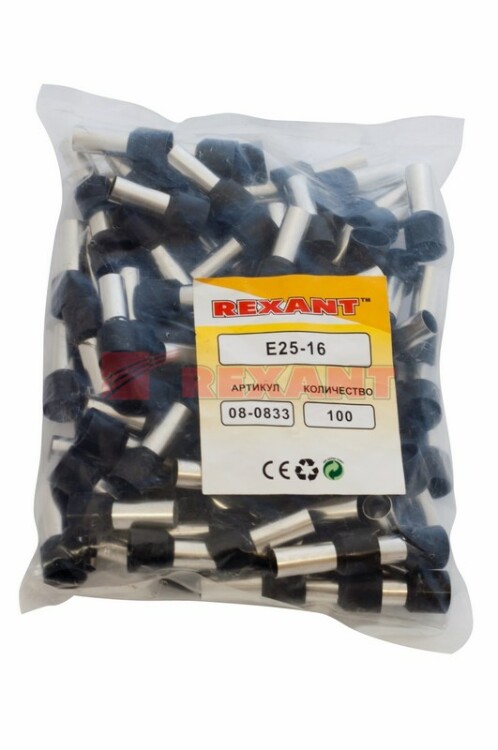 Наконечник штыревой втулочный изолированный F-16 мм 25 мм² (НШВи 25-16) черный REXANT