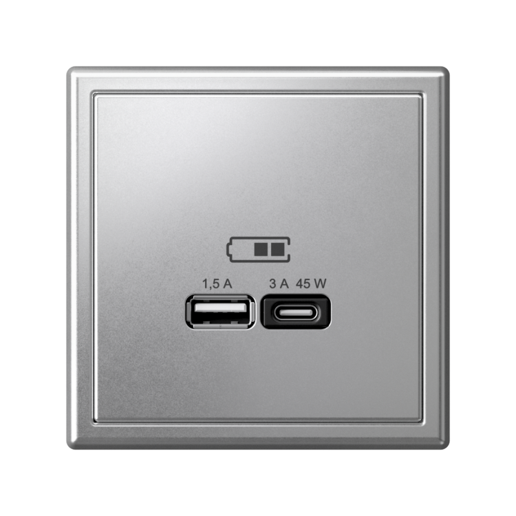 Розетка USB 2 порта A + C 45Вт высокоскор.заряд. QC, PD алюминий ArtGallery