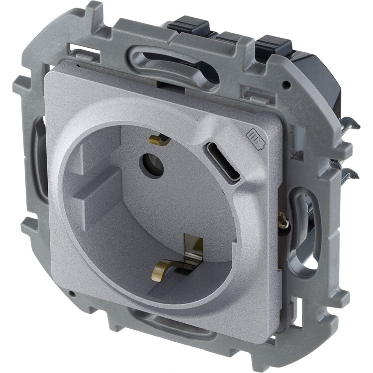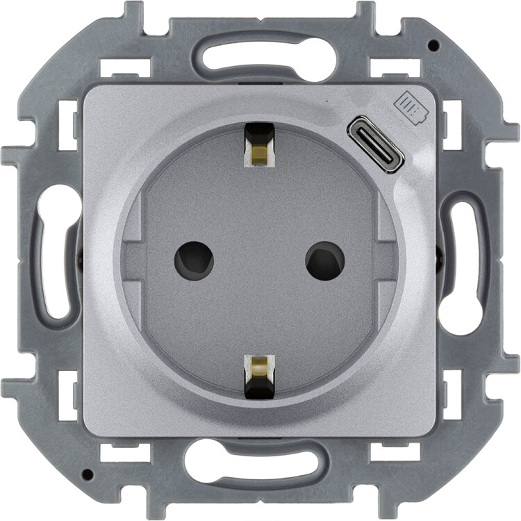 Розетка 2P+E 16А 250В + USB C 1.5А 5В алюминий INSPIRIA