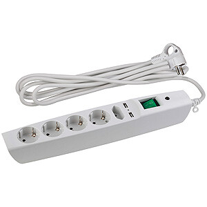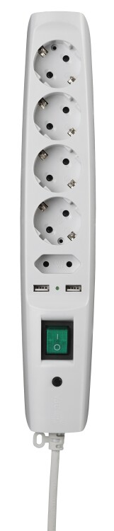 Сетевой фильтр, 5 розеток, длина 2 м, 3x0,75 мм², 10А, с/з, IP20, термопласт, белый, с выключателем,
