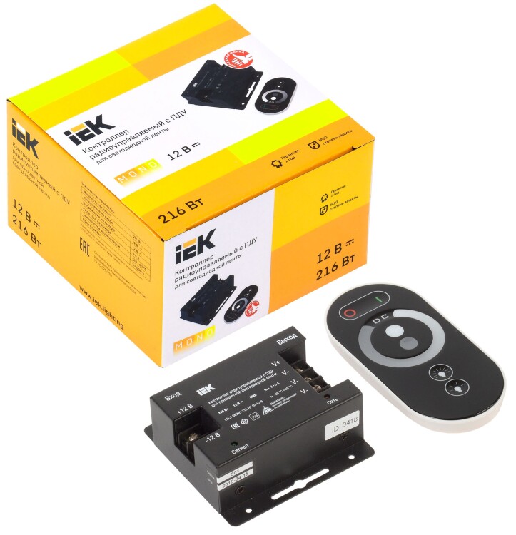 Контроллер с ПДУ радио (черный) MONO 3 канала 12В, 6А, 216Вт IEK