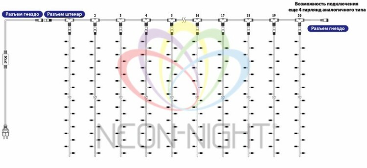 Гирлянда светодиодная Занавес 2x6м 768 LED БЕЛЫЙ прозрачный ПВХ IP65 постоянное свечение 230В нужен блок 303-500-1 NEON-NIGHT