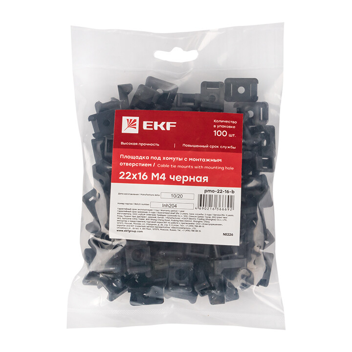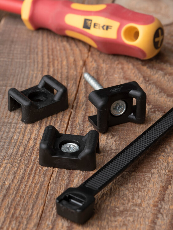 Монтажное основание для кабельных стяжек, пластик черный диаметр монтажного отверстия 4.4мм EKF