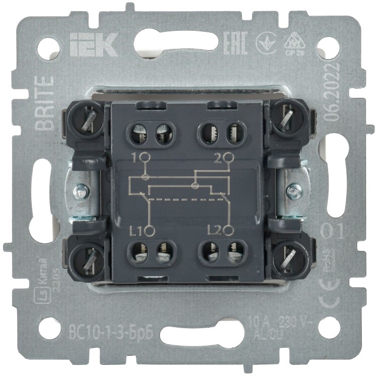 Переключатель 1 клавишный перекрёстный 10А белый BRITE