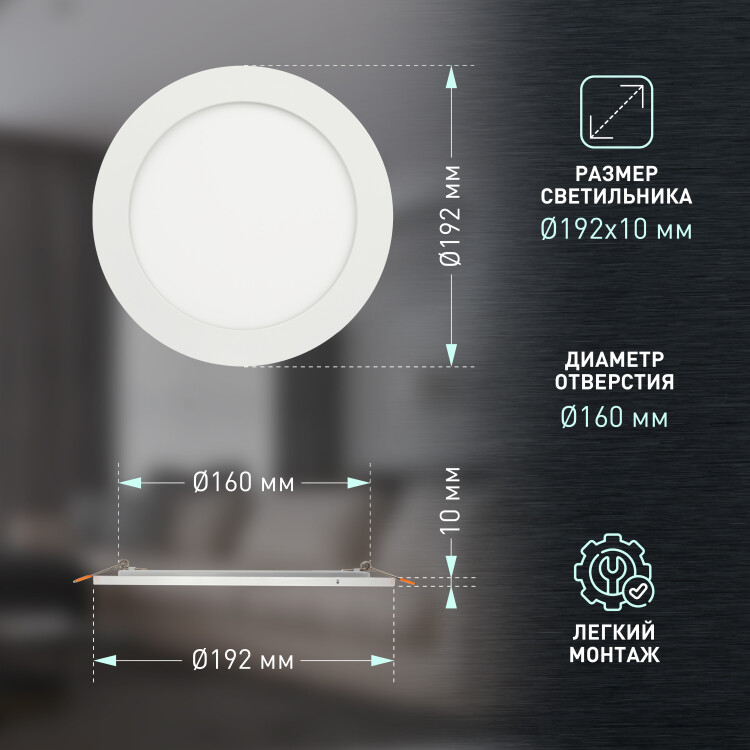 Светильник светодиодный встраиваемый ЭРА LED 1-16-4K круглый 16Вт 4000К