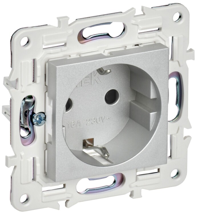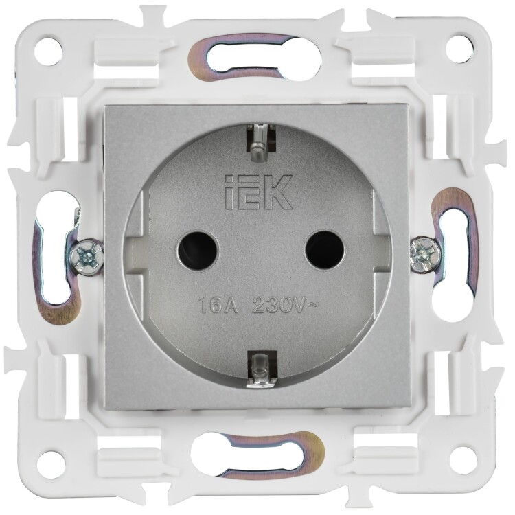 Розетка с заземлением с защитными шторками 16А SK-R04S серебряный SKANDY