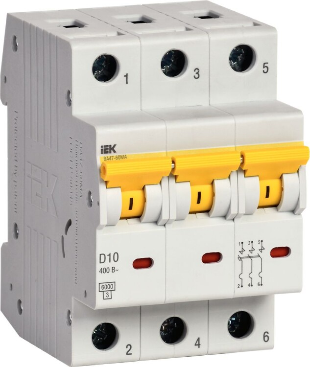 Автомат. выкл. 3-пол. 10А тип D 6кА без тепл. расцеп. ВА47-60МА