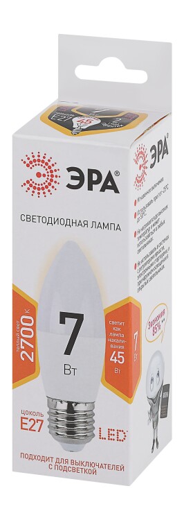 Лампочка светодиодная ЭРА STD LED B35-7W-827-E27 E27 / Е27 7Вт свеча теплый белый свет