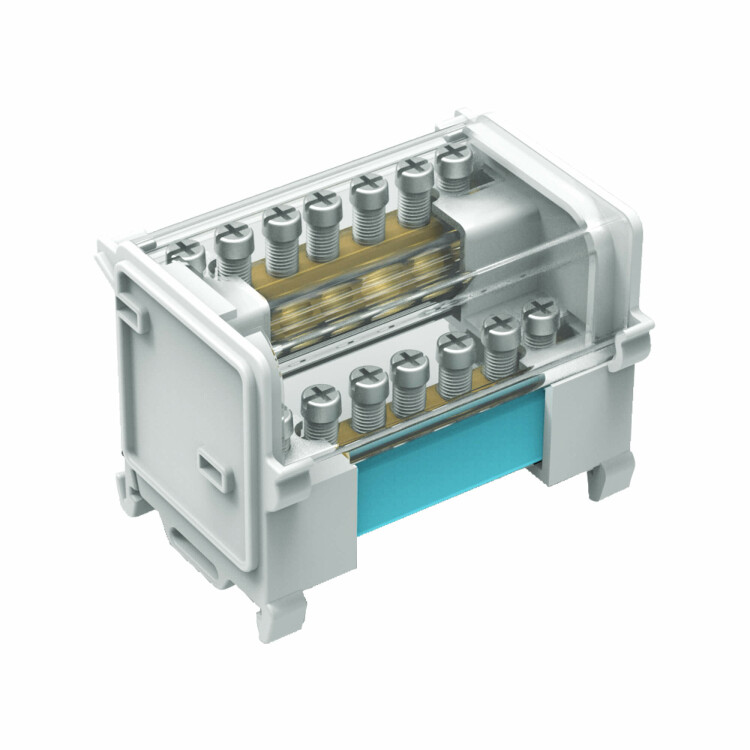 Кросс-модуль на DIN-рейку, 2 полюса, 100 А, 5х1,5-10 мм², 1х4-25 мм², 1х6-35 мм², Quadro