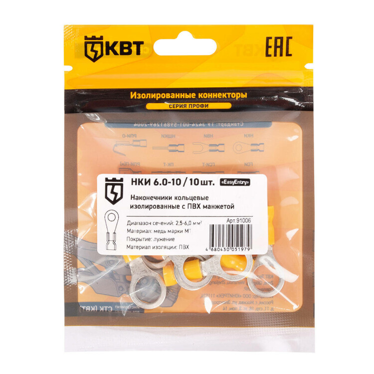Наконечник кабельный кольцевой изолированный НКИ 6.0–10 (10 шт) (КВТ)