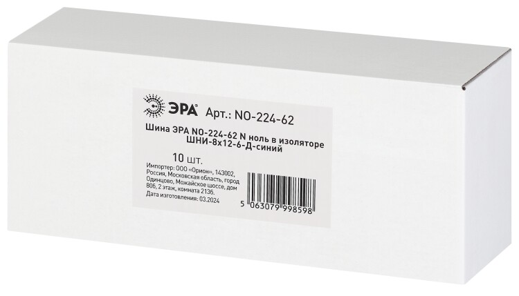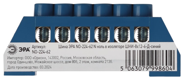 Шина ЭРА NO-224-62 N ноль в изоляторе ШНИ-8х12-6-Д-синий