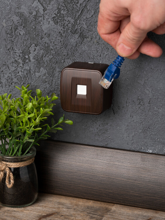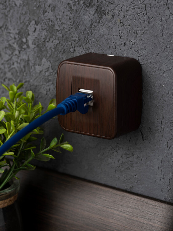 Розетка RJ-45 1-местная ОП Минск, 1А, 120В, тёмное дерево EKF