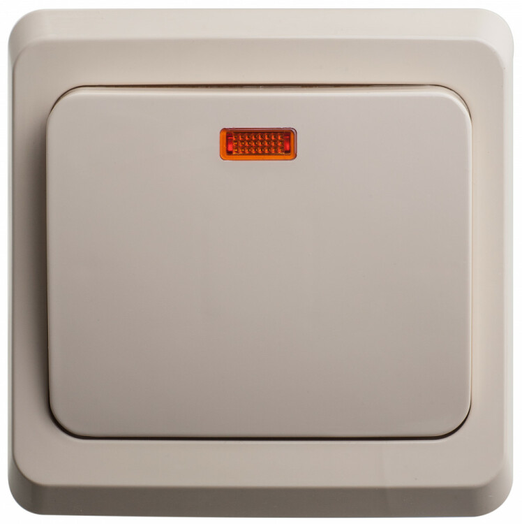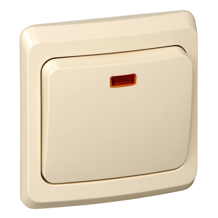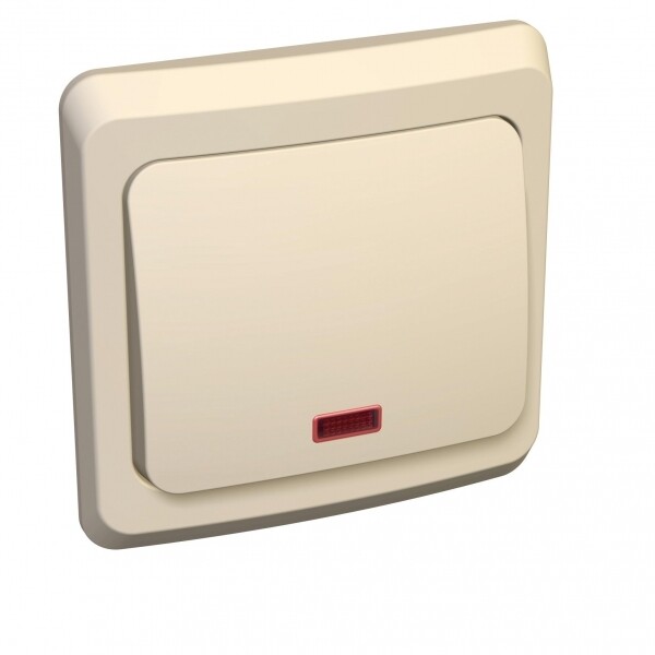 Переключатель 1 клавишный с подсветкой 10А кремовый Этюд