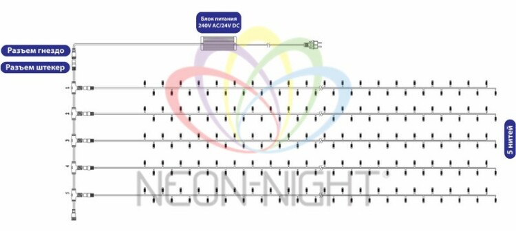 Гирлянда LED ClipLight 24V, 5 нитей по 20 метров, цвет диодов Мульти