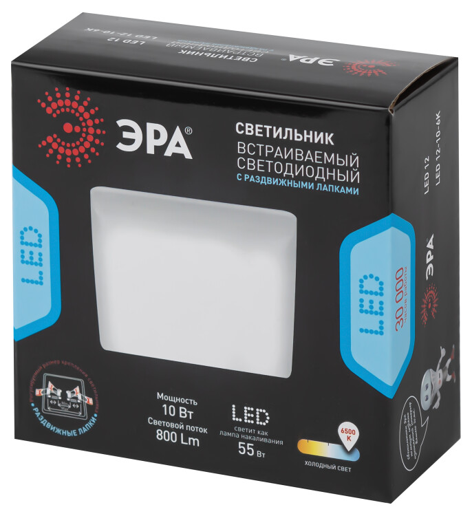 Светильник светодиодный встраиваемый ЭРА LED 12-10-6K квадратный регулируемый 10Вт 6500K