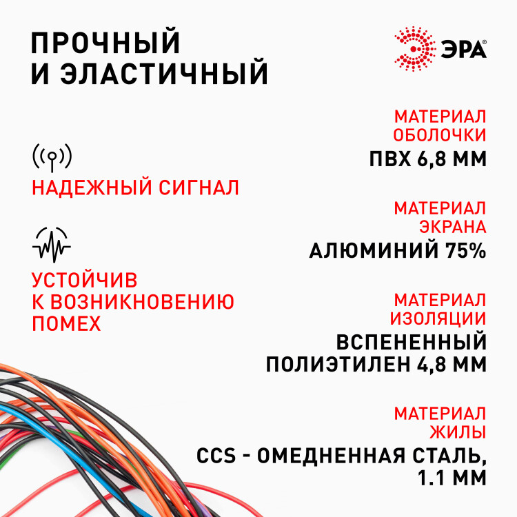 ЭРА Кабель коаксиальный SAT 703 B,75 Ом, CCS/(оплётка Al, 75%), PVC,цвет белый, бухта 50 м, SIMPLE