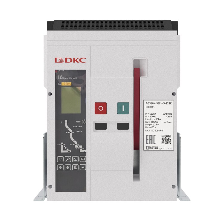 Воздушный автоматический выключатель YON AGS06N 3Р 630 А 65 кА, типоразмер S, расцепитель 3M, фиксированный, горизонтальное подключение