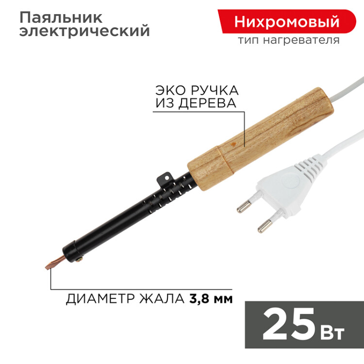 Паяльник с деревянной ручкой, серия ЭПСН, 25Вт, 230В, пакет REXANT