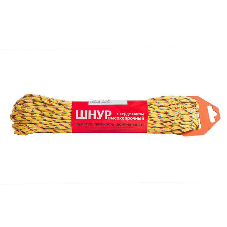 Шнур плетеный с сердечником 4мм высокопрочный цветной 20 метров