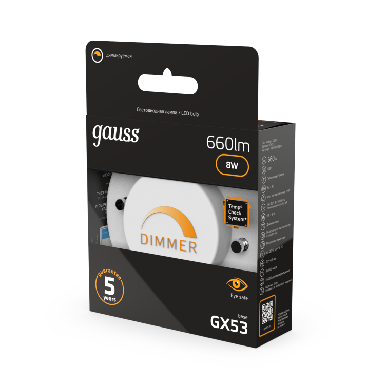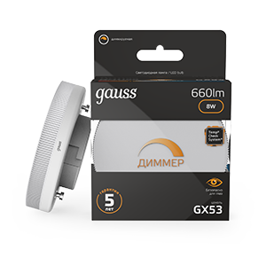 Лампа светодиодная DIM таблетка 8 Вт 230В GX53 диммируемая 2700К тёплый
