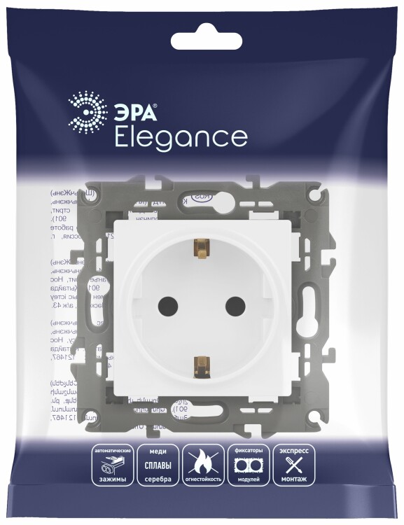 Розетка 2P+E со шторками 16А белый Elegance 14-2102-01