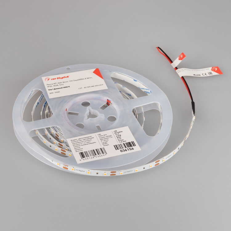 Светодиодная лента NT-A60-8mm 12V Day4000(4.8 W/m, IP20, 3528, 5m) (Arlight, Открытый)