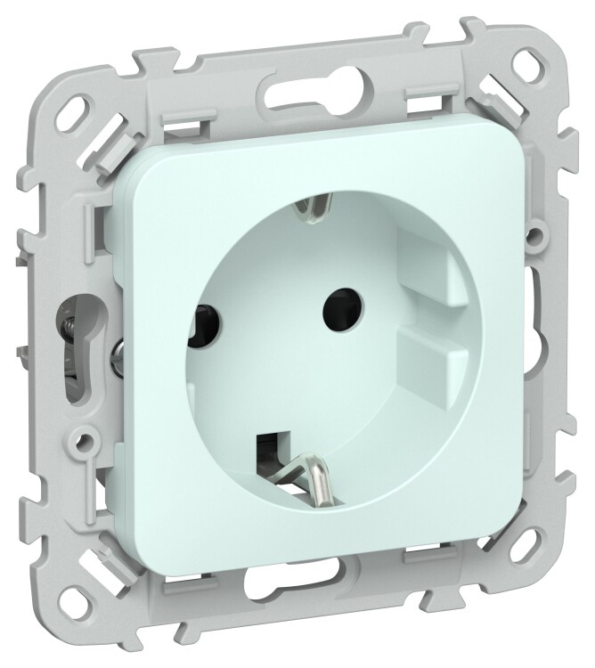Розетка 2P+E со шторками безвинтовое крепление 16А РСш11-1-ФлХЛ холодный лед FLITE