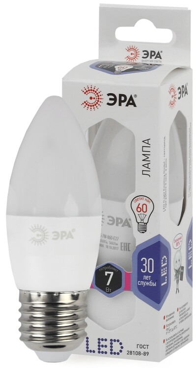 Лампочка светодиодная ЭРА STD LED B35-7W-860-E27 E27 / Е27 7Вт свеча холодный дневной свет