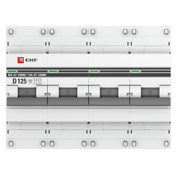 Автоматический выключатель 4P 125А (D) 10kA ВА 47-100M без теплового расцепителя EKF PROxima