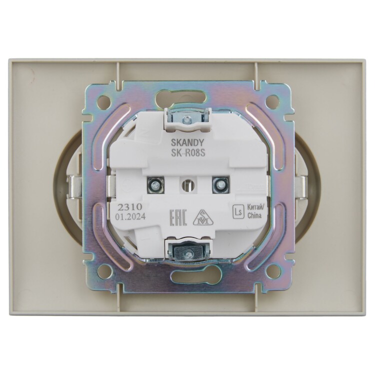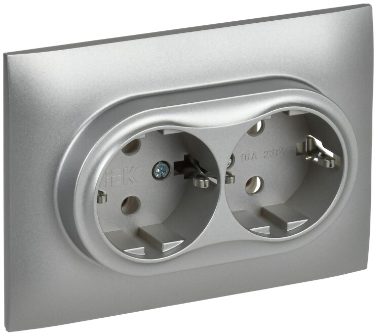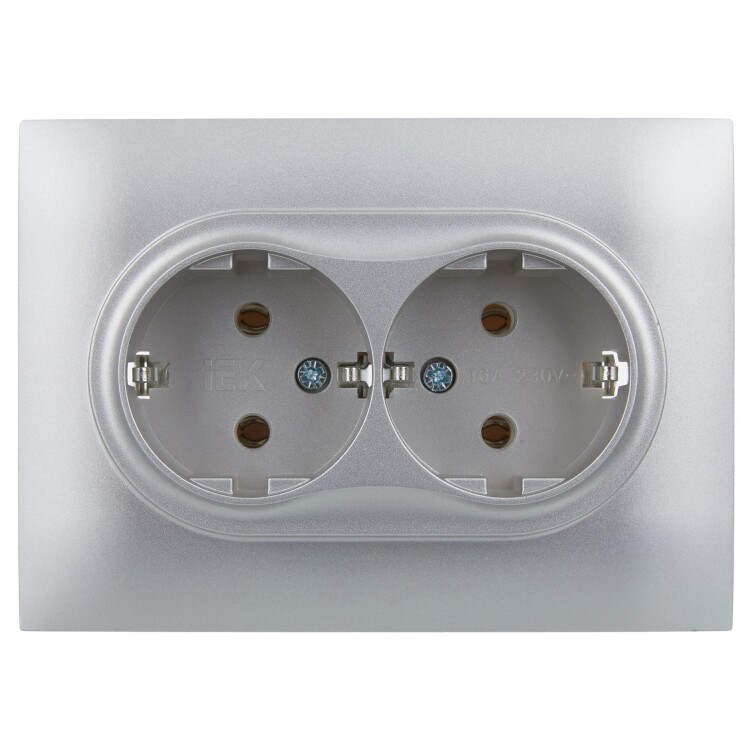 Розетка 2-местная с заземлением без защитных шторок 16А в сборе SK-R08S серебряный SKANDY
