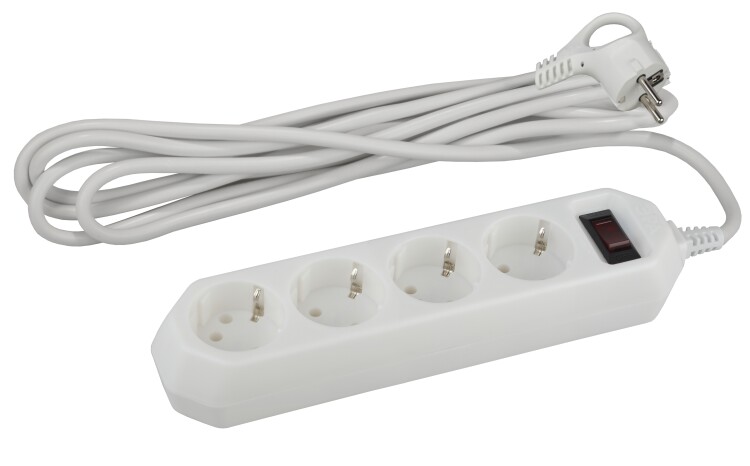 Сетевой фильтр, 4 розетки, длина 1,5 м, 3x0,75 мм² , 10А, с/з, IP20, термопласт, белый, с выключате