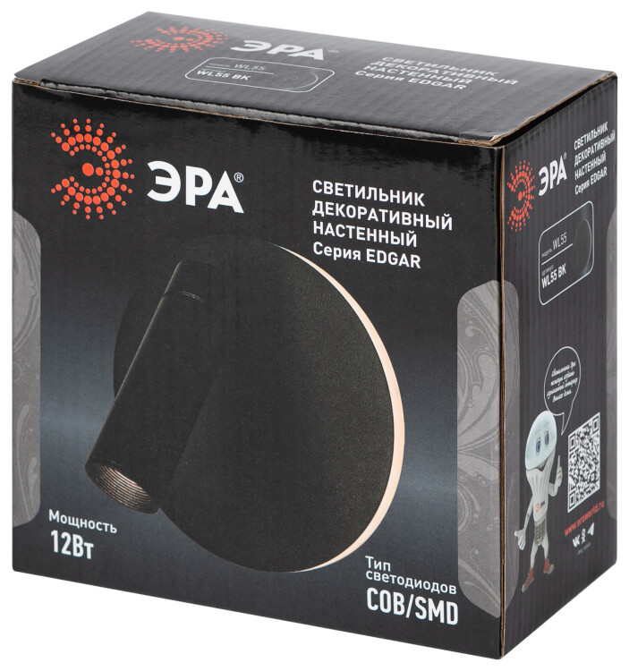 Декоративная подсветка светодиодная ЭРА EDGAR WL55 BK для интерьера COB 5Вт/SMD 7Вт 4000К черный IP20