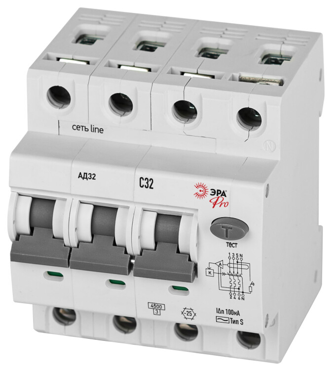 АВДТ 4,5кА ЭРА PRO D32E4C32S100 АД-32 электронное 3P+N C32 100мА тип S