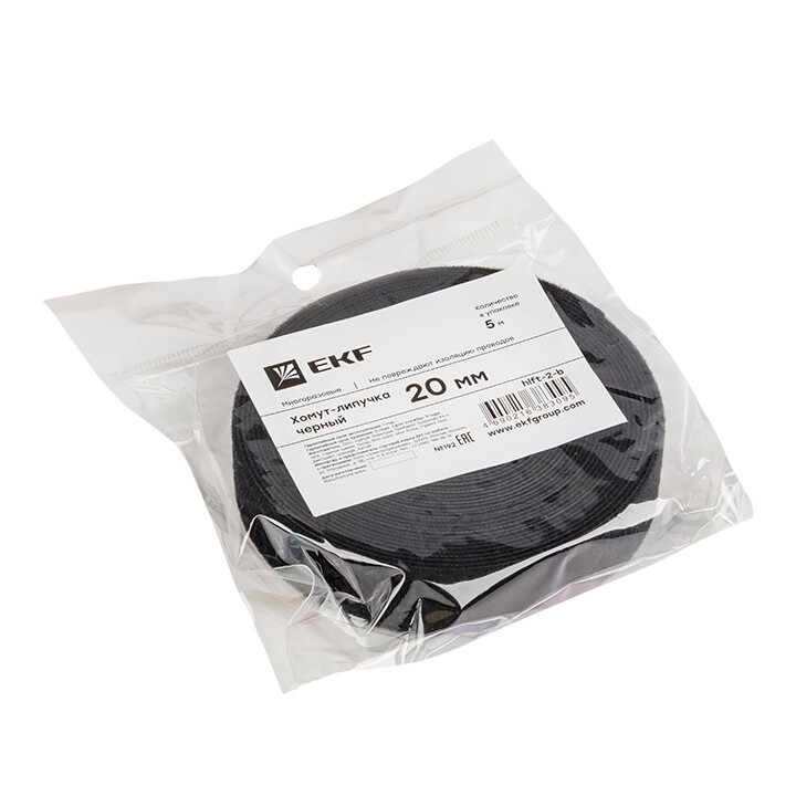 Хомут-липучка 20 мм (5м ролл) черный EKF PROxima