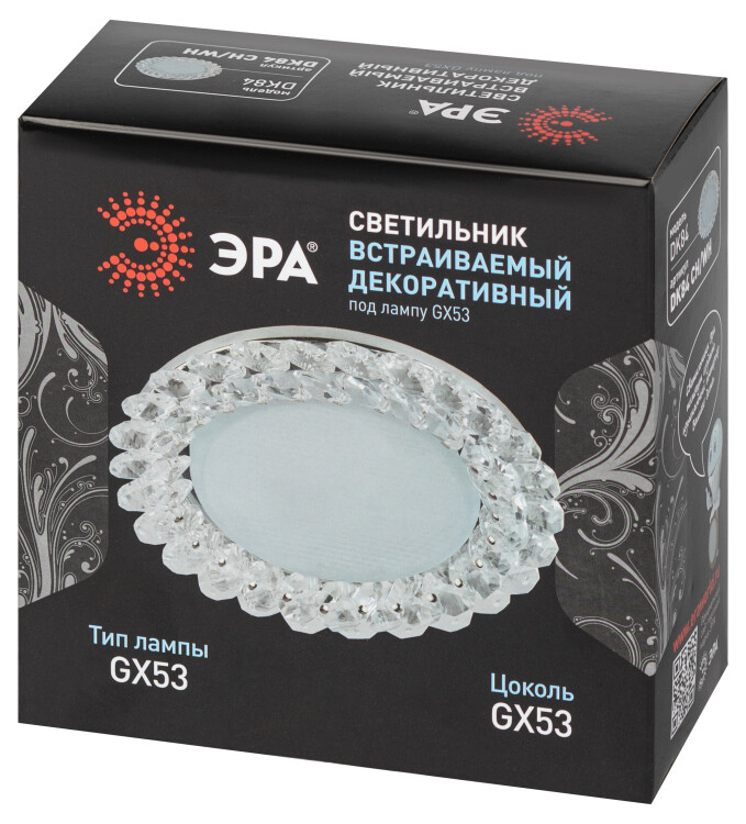 DK84 CH/WH Светильник ЭРА под лампу Gx53, 220V,13W, хром/прозрачный (40/960)