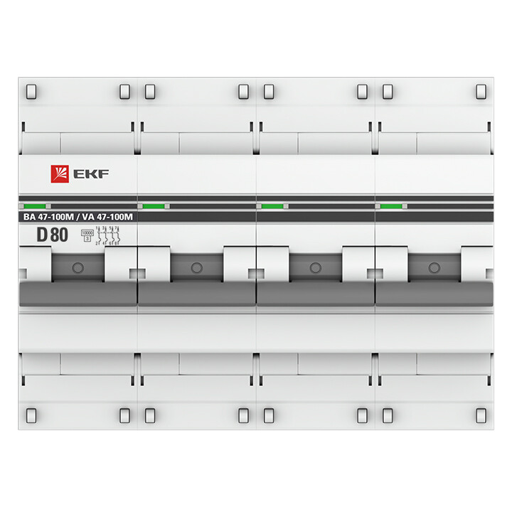 Автоматический выключатель 4P 80А (D) 10kA ВА 47-100M без теплового расцепителя EKF PROxima