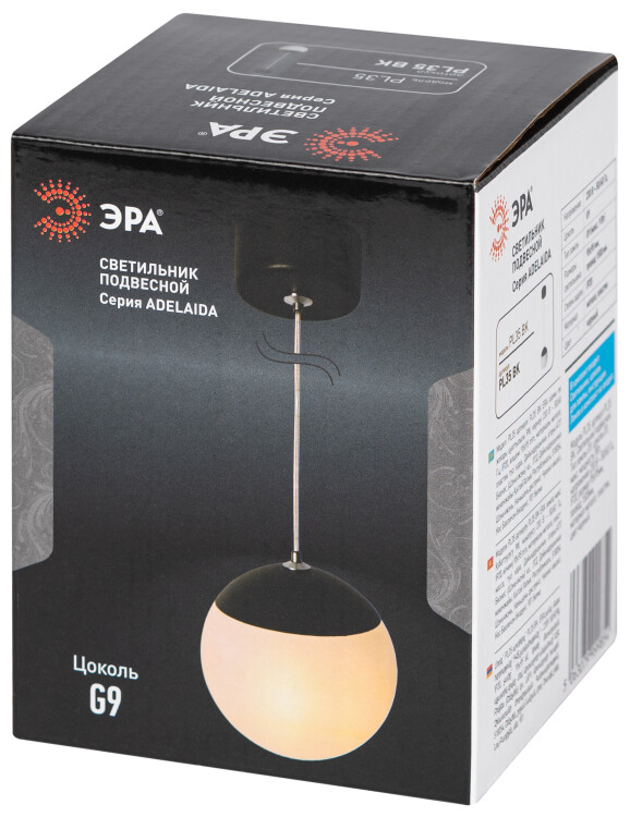 Светильник подвесной (подвес) ЭРА ADELAIDA PL35 BK G9 потолочный шар черный